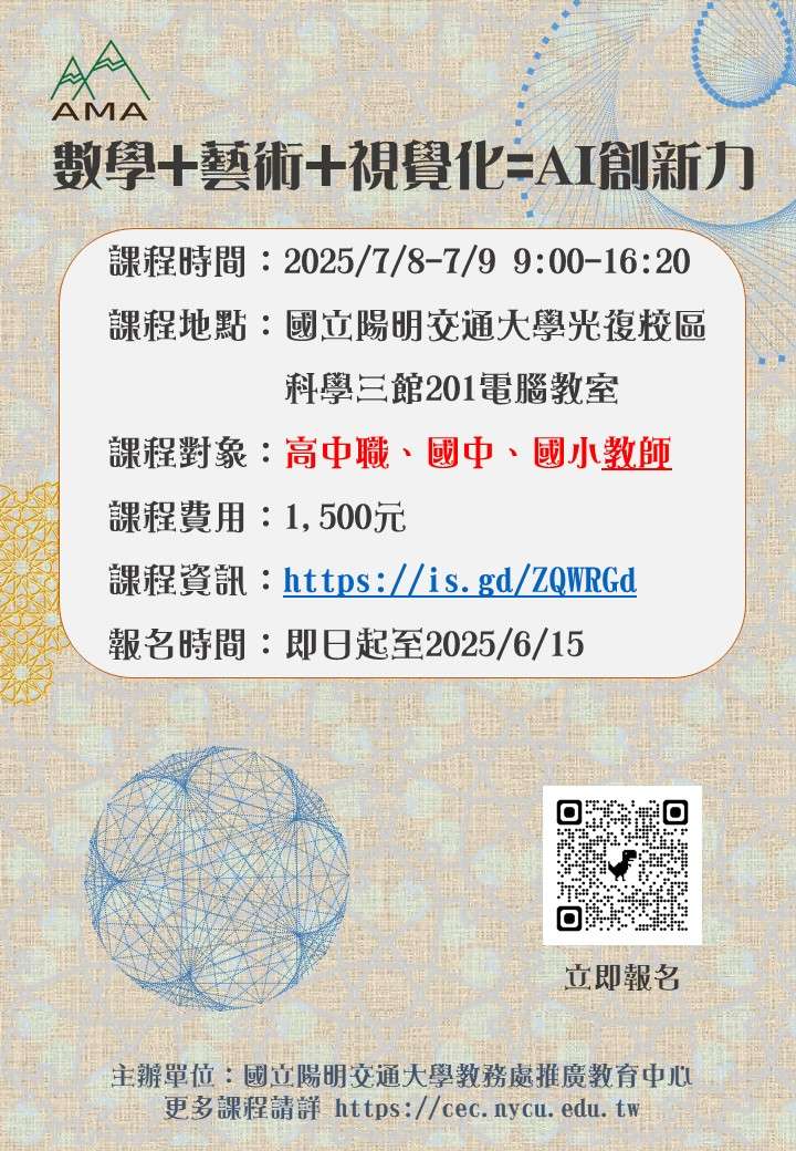 一、旨揭課程融合數學 × 藝術的視覺化創作精神,結合