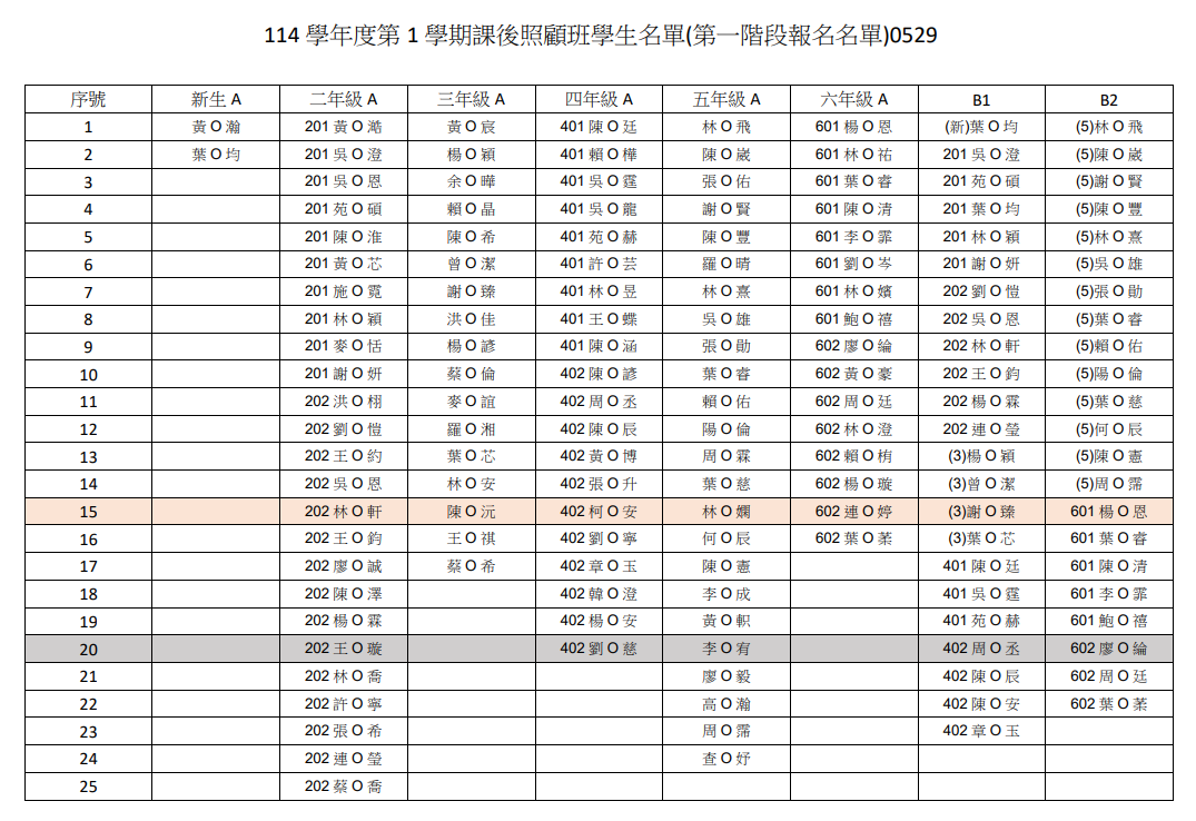 本校114學年度第1學期課後照顧班第一階段報名與開班情形如附件。
