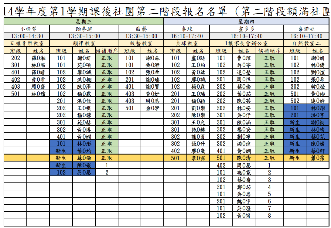 一、錄取名單如附檔,藍底為於第二階段報名之學生。