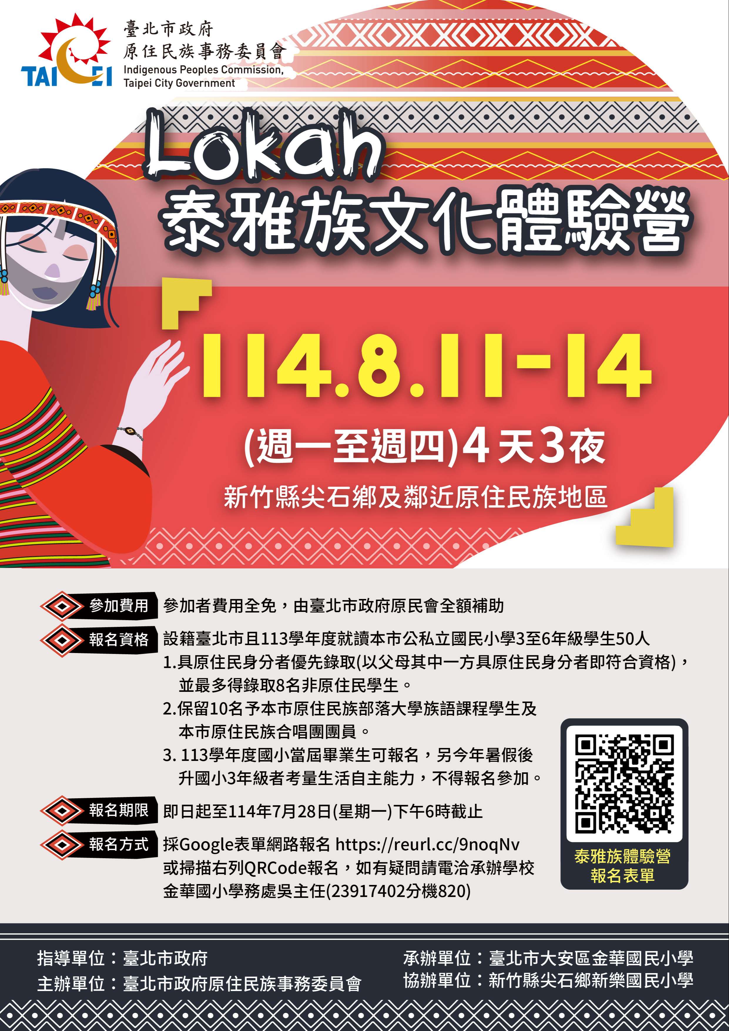 主旨:檢送本會辦理「Lokah泰雅族文化體驗營」報名簡章及宣