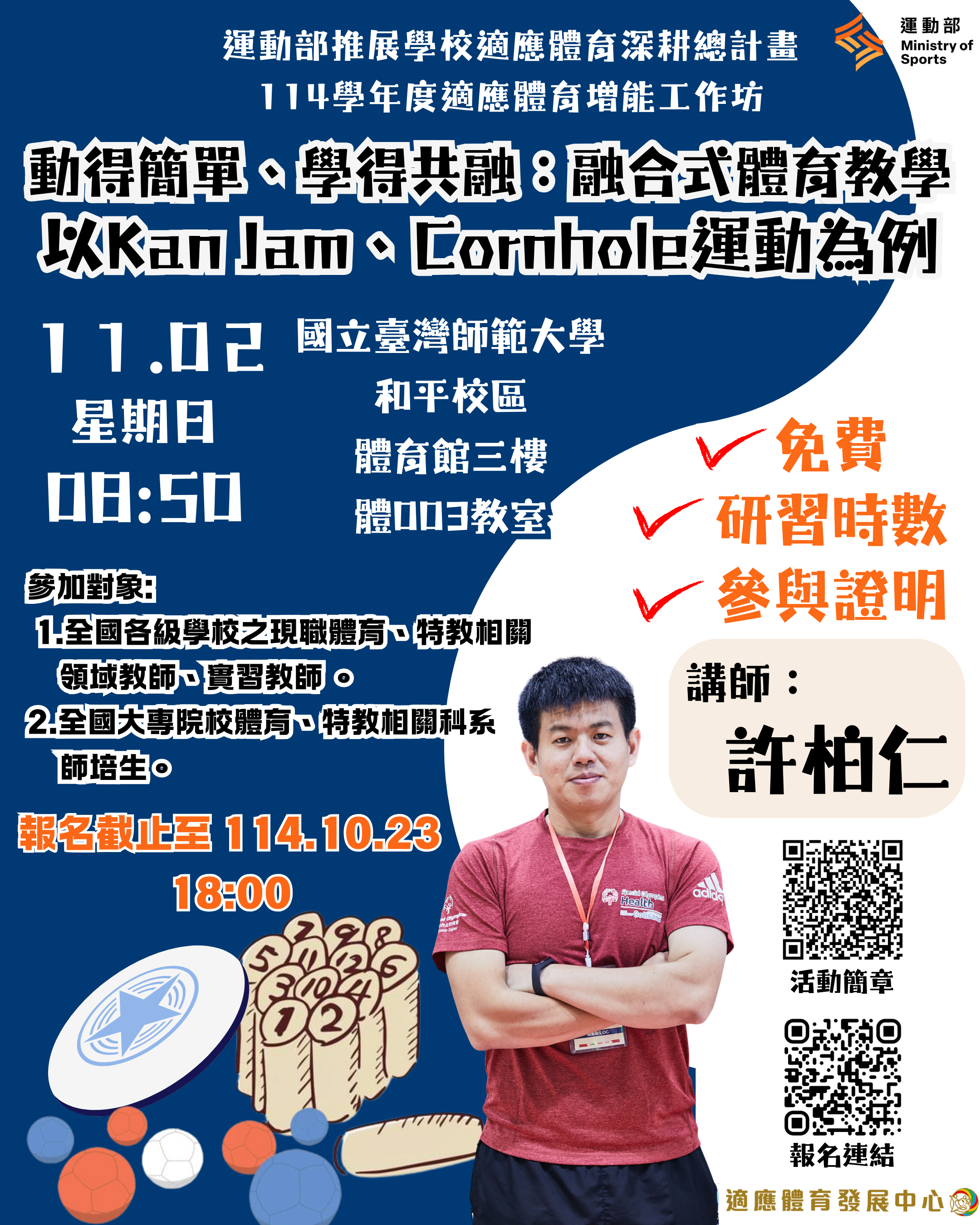 教學,以Kan Jam、Cornhole運動為例」,請踴躍報名參